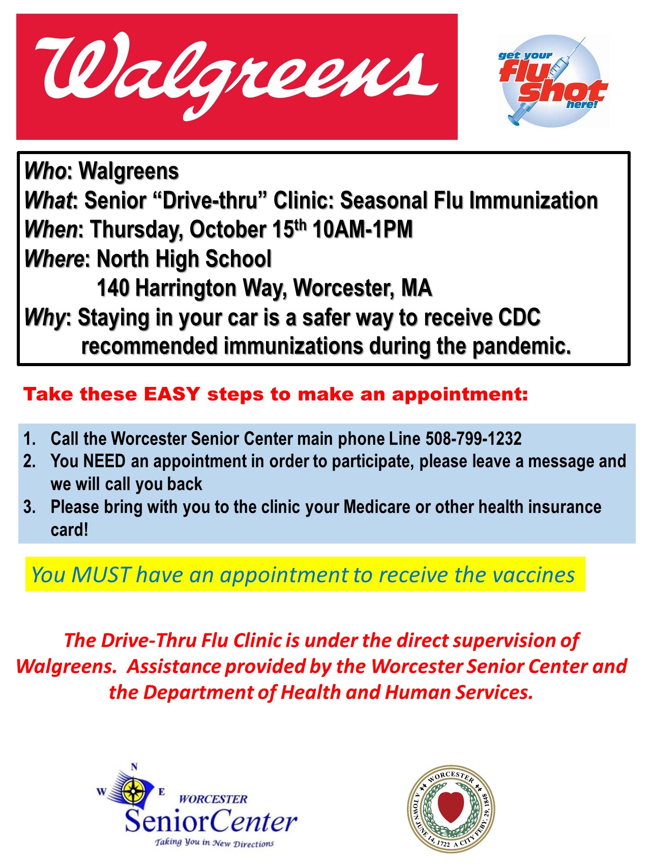 City Of Worcester On Twitter The Worcester Senior Center And Walgreens Will Host A Drive Thru Flu Clinic For Senior Citizens This Thursday October 15 10 A M 1 P M At North High
